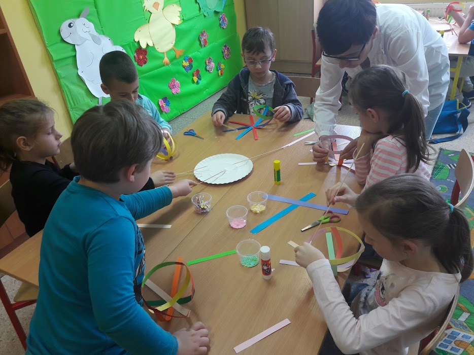 Powstały kolorowe koszyczki, błyszczące pisanki, kurczaczki i małe zajączki. Efekty swojej pracy dzieci zaprezentowały na wspólnej wystawie. Spotkanie zakończyły skoczne tańce i poczęstunek dla gości.